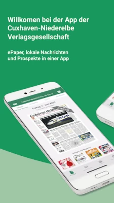 Bleiben Sie stets informiert mit der ePaper-/Newsapp der Cuxhaven-Niederelbe-Verlagsgesellschaft. Lesen Sie täglich aktuelle Nachrichten, Sport- und Kulturereignisse aus der Elbe-Weser-Region bequem auf Ihrem Smartphone oder Tablet – wann und wo Sie möchten, auch offline.