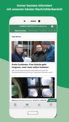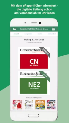 Erleben Sie die Region Cuxhaven und Niederelbe wie nie zuvor mit der CNV-Medien App. Ihre täglichen Begleiter, die Cuxhavener Nachrichten und die Niederelbe-Zeitung, werden Ihnen in einer hochmodernen digitalen Ausgabe direkt auf Ihr Gerät gebracht. Schon am Vorabend, ab 20:00 Uhr, tauchen Sie in ausgewählte Schlüsselberichte ein, während die vollständige Ausgabe des nächsten Tages bereits ab etwa 3:00 Uhr zum bequemen Abruf bereitsteht. So sind Sie stets einen Schritt voraus und bestens über alles Relevante aus Ihrer Heimat und der Welt informiert.