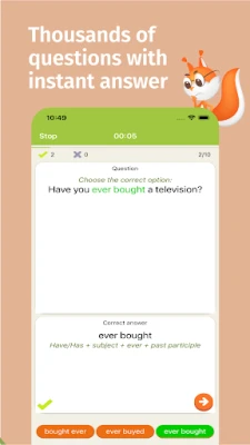 Lernen Sie englische Grammatik direkt auf Ihrem Handy. Diese App ist ideal für alle Nicht-Muttersprachler und bietet Tausende von Fragen mit sofortigen Erklärungen, übersichtlich nach Themen geordnet. Perfekt, um Ihre Englischkenntnisse zu verbessern.