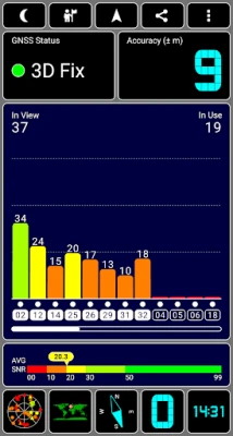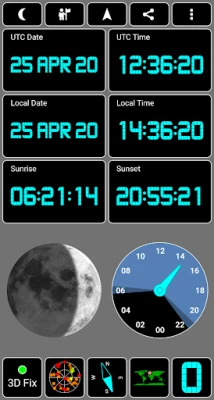 Prüfen Sie den GPS-Empfang und aktualisieren Sie AGPS-Daten für schnellere Fixes. Diese App zeigt Höhe, genaue UTC/Lokalzeit, Kompassrichtung, Mondphase und Tageslichtstunden an. Sie unterstützt gängige Satellitensysteme wie GPS, GLONASS, GALILEO und bietet anpassbare Farbschemata inklusive Nachtmodus.
